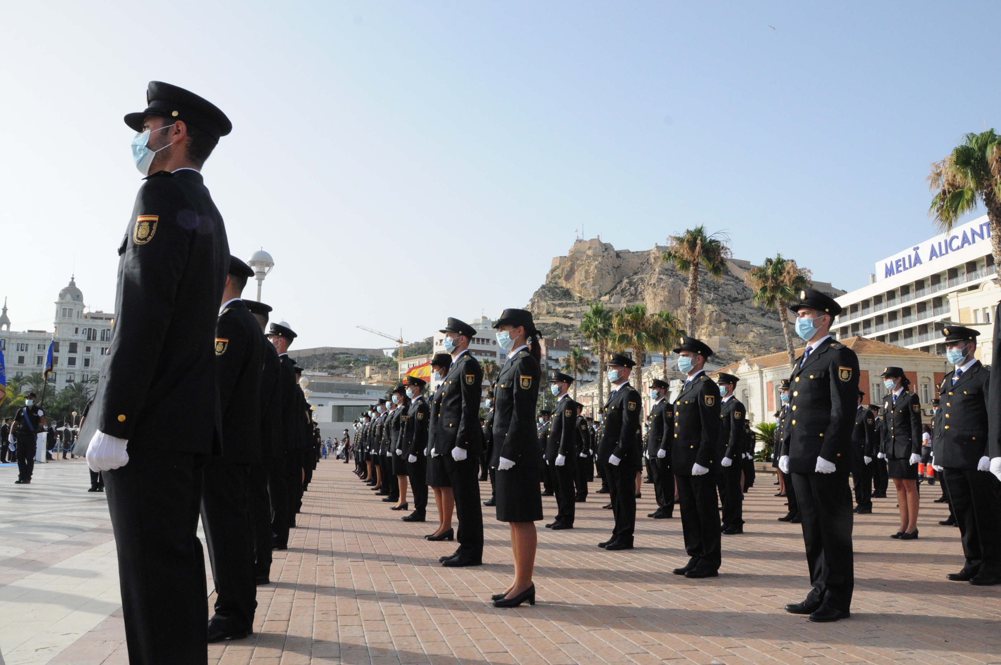El lugar elegido fue la plaza de puerto de Alicante, una apropiado escenario cedido por la Autoridad portuaria y su presidente Juan Antonio Girbert que también acudió al acto. De los 158 policías que juraron el cargo, 22 son mujeres y 136 hombres y 36 de ellos han conseguido como primer destino uno de los puestos ofertados en las diferentes Comisarías de la provincia por lo que continuaran su carrera profesional realizando sus funciones en tierras alicantinas. El acto ha sido realizado siguiendo las medidas de distanciamiento social dictadas por el Ministerio de Sanidad tanto para los participantes como para sus familiares, con el uso de mascarillas y evitando en todo momento cualquier tipo de aglomeración.