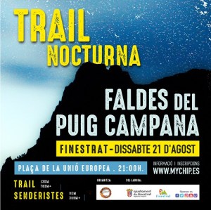 En la noche del sábado 21 de agosto se disputa en Finestrat la II Trail Nocturna Faldes del Puig Campana. Prueba organizada por el C.E. El Portell de Finestrat contando con el apoyo de la Concejalía de Deportes. Se trata de una propuesta deportiva dirigida especialmente a los amantes del Trail y el senderismo, que se desarrollará a partir de las 21:00 horas del sábado 21 para evitar las altas temperaturas estivales.