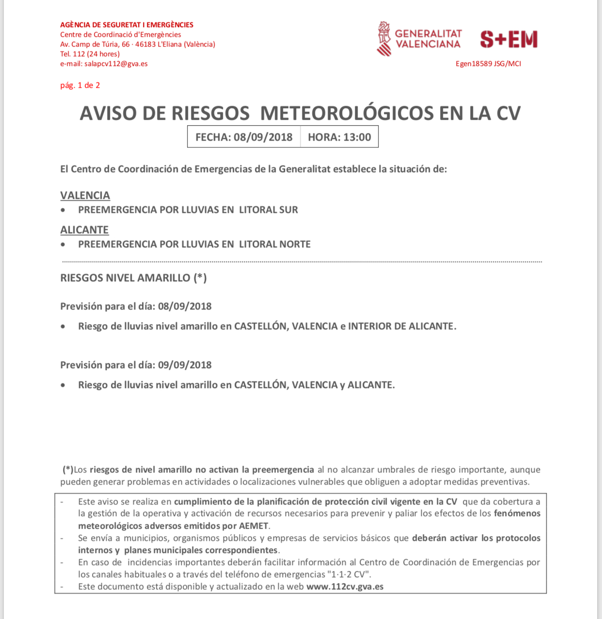 - Cuando se notifique una preemergencia, procura estar informado de la evolución de la situación. Sintoniza las emisoras de radio y televisión que den noticias de ello.