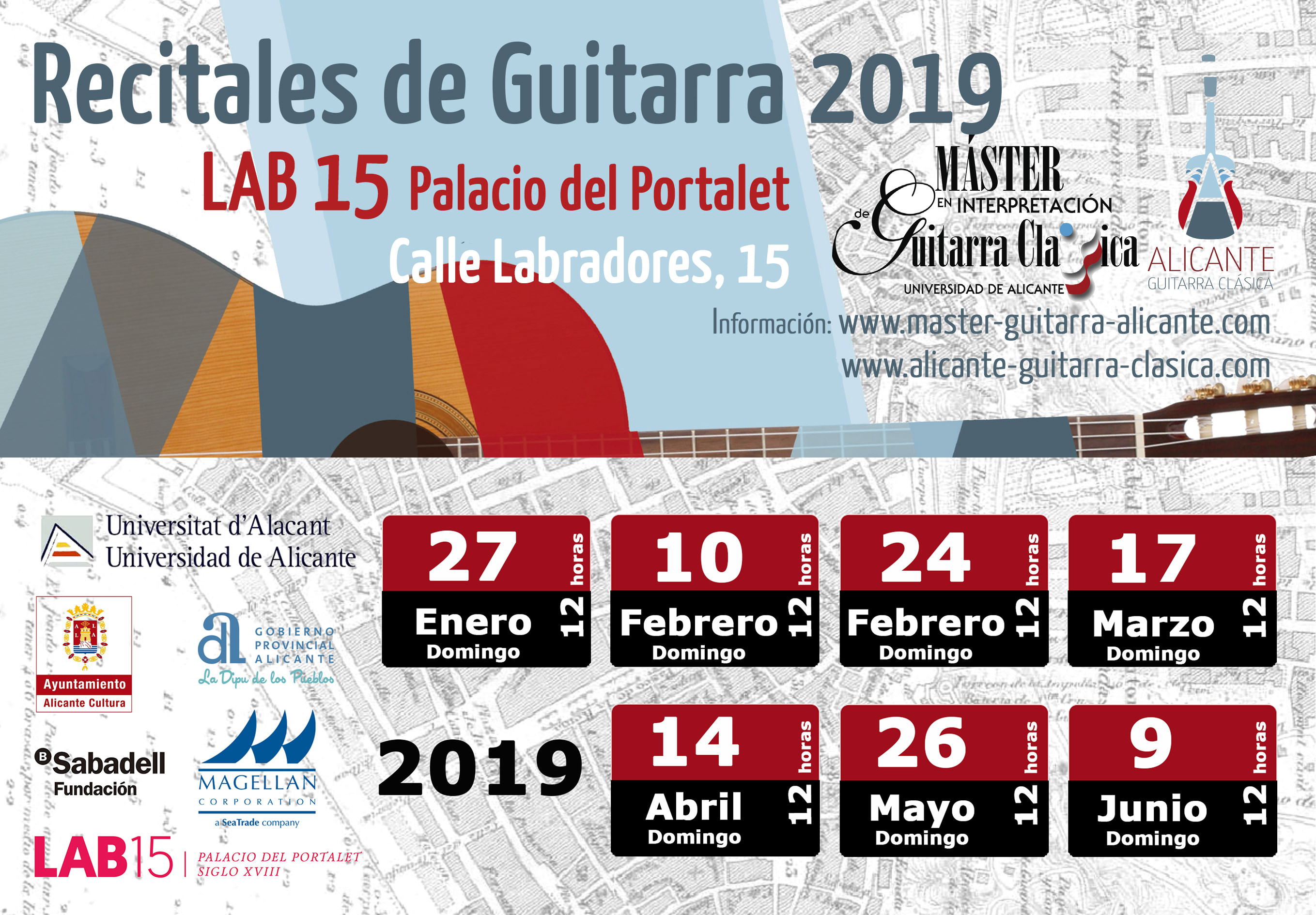 El I Máster en Interpretación de Guitarra Clásica, dirigido a profesionales de la guitarra se inició el 11 de enero de 2013, organizado por la Universidad de Alicante. Ofrece a 14 graduados y profesionales de la guitarra de diferentes países la oportunidad única de perfeccionar sus conocimientos y práctica del instrumento de la mano de un Colegio de profesores seleccionados entre los más reputados virtuosos del mundo.