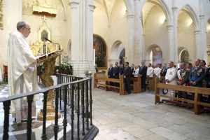 El alcalde de Alicante, Luis Barcala, ha asistido esta mañana en la Basílica de Santa María a la misa conmemorativa en honor a la Virgen del Carmen, patrona de la Armada, enmarcada dentro de los actos organizados por la Comandancia de la Marina, y a la que han asistido diferentes representantes de los cuerpos y fuerzas de seguridad entre los que se encuentran la Policía Local, Policía Nacional y Guardia Civil.