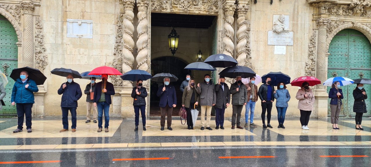 El alcalde Luis Barcala, la vicealcaldesa Mari Carmen Sánchez y una amplia representación de la corporación municipal han participado en la Plaza del Ayuntamiento en esta convocatoria de condena efectuada por la Federación Valenciana de Municipios y Provincias (FVMP) y en la que se han respetado en todo momento las medidas establecidas por las autoridades sanitarias.