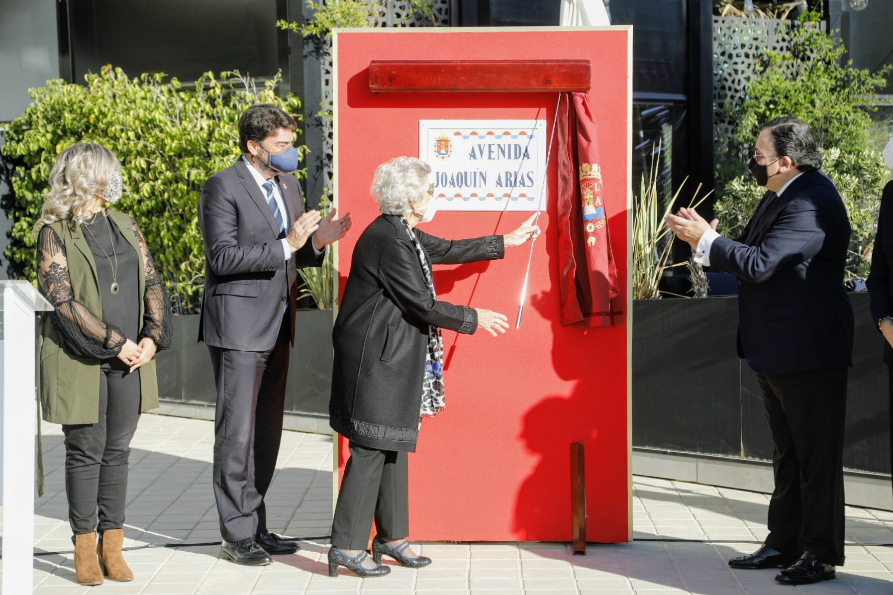 La ciudad de Alicante ha rendido homenaje esta mañana al empresario creador del grupo Vectalia, Joaquín Arias López, en un acto al que han acudido su mujer Julia Paredes, junto con sus hijos, nietos y biznietos, que se ha celebrado para descubrir la placa que da su nombre a este vial situado entre la glorieta de la Democracia y Deportista Javier Cabanas.