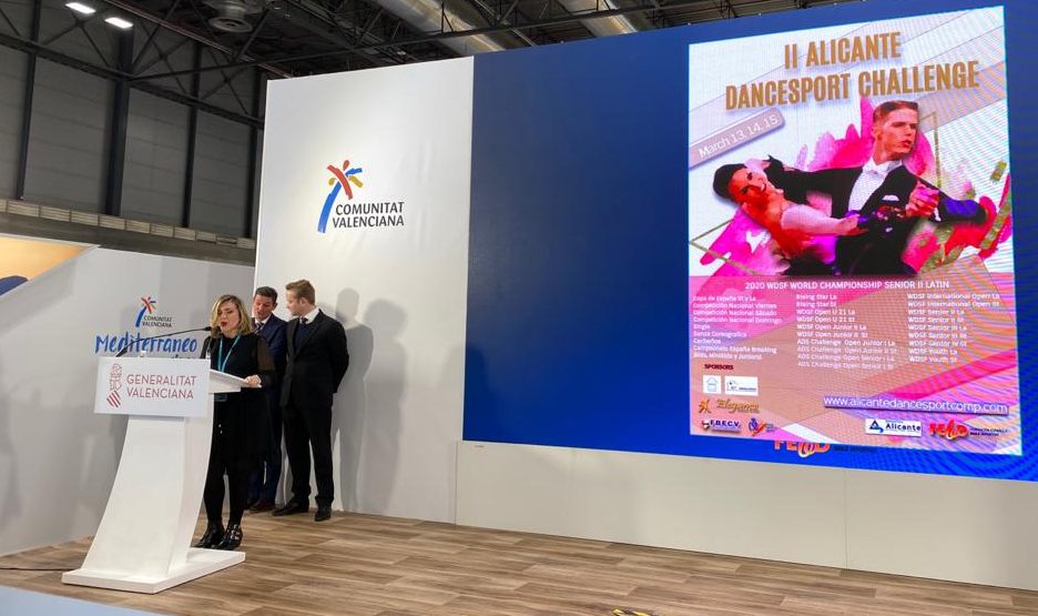 Alicante volverá a albergar una de las más grandes competiciones de bailes de salón con la celebración de la II Alicante Dancesport Challenge, el 14 y 15 de marzo en el Centro de Tecnificación, en la que está previsto participen más de 6.000 bailarines procedentes de distintos lugares del mundo. La competición ha sido presentada hoy en la Feria Internacional de Turismo de Madrid (FITUR) por la vicealcaldesa y concejala de Turismo, Mari Carmen Sánchez, y el concejal de Deportes, José Luis Berenguer. Mari Carmen Sánchez ha resaltado que «Alicante vuelve a ser escenario de una de las grandes competiciones de bailes de salón de cuantas se celebran en el mundo con esta segunda edición de la ‘Alicante Dancesport Challenge» en la que esperamos que venga a competir hasta la ciudad unos 6.000 deportistas». Sánchez ha resaltado que «Alicante vuelve a albergar competiciones de primer nivel, con capacidad para atraer a miles de personas que realizarán su estancia en la ciudad entre uno y dos días con una repercusión desde el punto de vista económico muy importante para el sector hotelero, la restauración y el ocio, porque deporte de competición es también una forma de hacer turismo».
