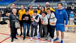 El partido de fútbol sala ha despertado el interés de una gran parte de público que ha acudido este sábado a esta cita solidaria a favor del Centro Alpe
