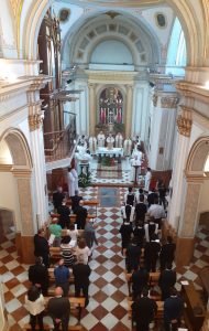 Esta lunes por la mañana ha tenido lugar la apertura oficial del curso académico 2019-2020 en el Seminario de Orihuela. Como es tradicional se ha celebrado en el marco de la festividad del arcángel San Miguel, patrono del Seminario. Toda la jornada de apertura ha estado presidida por el obispo de Orihuela-Alicante, monseñor Jesús Murgui y se ha contado también con la presencia de los obispos eméritos Rafael Palmero y Victorio Oliver y del prelado de la diócesis hermana de Albacete, Ángel Fernández Collado y de su rector. La mañana ha comenzado con la eucaristía presidida por el propio obispo en la que ha pedido a sus seminaristas que trabajen mucho su formación para “llegar a ser sacerdotes bien preparados y consolidar personalidades sólidas en un mundo líquido con un panorama social tan roto”. Les ha insistido también en la caridad, ya que, como indica el papa Francisco “la Iglesia es un hospital de campaña para curar a la gente y nuestra medicina es Cristo”. En este sentido, monseñor Murgui les ha animado a ser abiertos, cercanos, alegres y con ilusión. “Sabed que el mundo os necesita y el Señor os llama” ha culminado.
