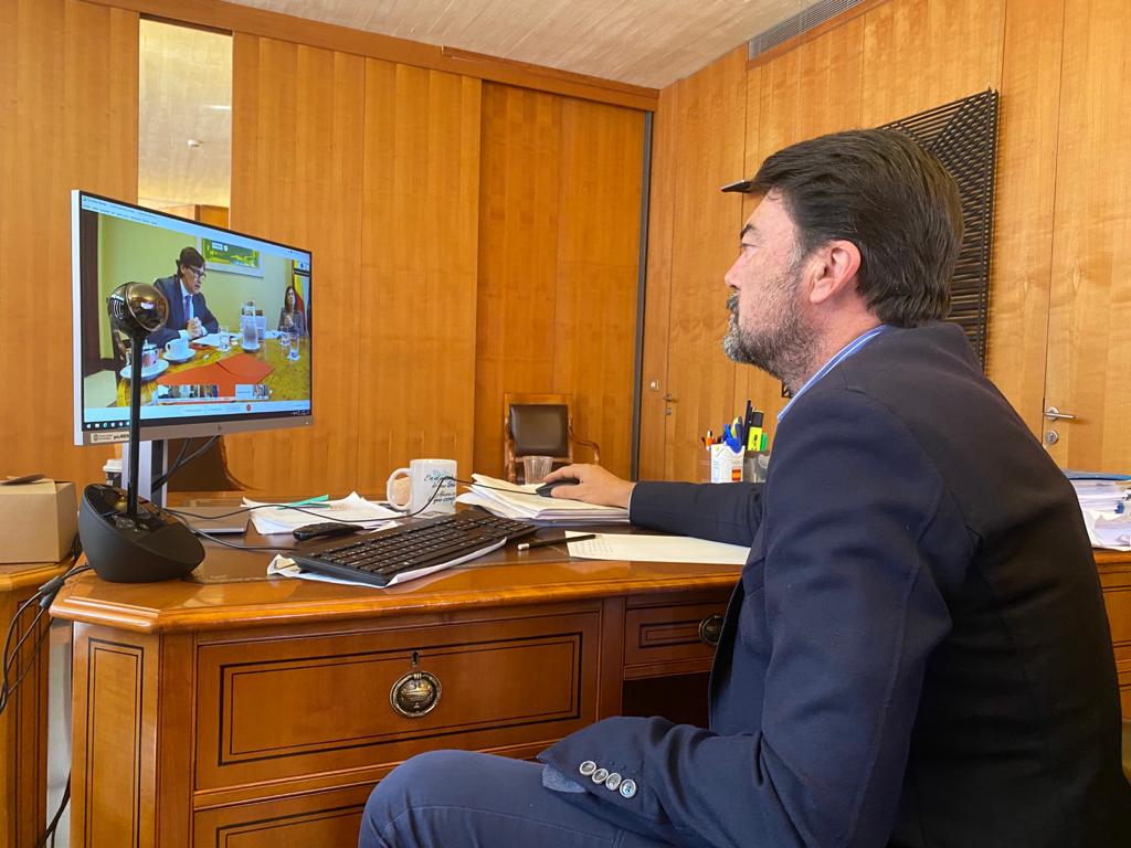 El alcalde de Alicante, Luis Barcala, ha participado hoy en una reunión telemática con el ministro de Sanidad, Salvador Illa, y la ministra de Política Territorial y Función Pública, Carolina Darias, en la que fundamentalmente se ha expresado la queja de los regidores del PP por la ausencia de ayudas por parte del Gobierno a los ayuntamientos para hacer frente a las consecuencias sociales y económicas como consecuencia de la pandemia. El alcalde, al término del encuentro propiciado por la FEMP, ha lamentado que «a día de hoy siga sin existir un plan de auxilio a las entidades locales, pese a que somos la primera linea de batalla contra el Covid 19 y sus consecuencias sociales y económicas».