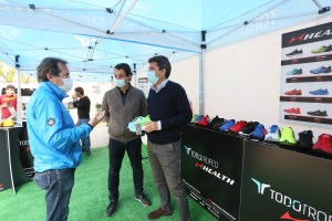 El presidente de la Diputación de Alicante, Carlos Mazón, ha inaugurado esta mañana la Feria del Corredor que se ha instalado en los jardines del Palacio Provincial con motivo de la celebración, este domingo, de la ‘III Gran Carrera del Mediterráneo – Costa Blanca Half Marathon 2021‘ y de la ‘III Gran Carrera del Mediterráneo Sup Race‘. Durante el recorrido, el presidente ha aprovechado para recoger el dorsal y la camiseta con las que participará en la prueba a pie.