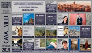Casa Mediterráneo da comienzo a su agenda cultural para el mes de septiembre con una propuesta de más de 20 actividades relacionadas con la literatura, la danza, el arte, la ciencia o la gastronomía, entre otros temas. Invitados del calibre de Juan Pedro Aparicio, Cristina López Barrios, María Blasco o Ramón Lobo forman parte de esta programación, en la que se presentará, además, el segundo título de la colección Casa Mediterráneo, con la obra de Rosa Tovar. Casa Mediterráneo dará inicio a las actividades con el estreno del ciclo ‘Embajadores del Mediterráneo’ en el que los embajadores españoles destinados en los países de la cuenca mediterránea charlarán sobre las relaciones diplomática entre los diferentes estados. Para ello, el embajador de España en Turquía, Juan González-Barba, será el encargado de inaugurar esta nueva sección el día 5 de septiembre en Valencia.