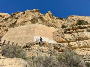 En concreto, la empresa contratada ha limpiado una pintada de grandes dimensiones en un lugar de difícil acceso en el monte Benacantil que era visible desde distintos puntos de la ciudad. También en el intradós del arco de la torre del Castillo de Santa Bárbara, en la muralla y en la garita de entrada. Asimismo se ha limpiado la fuente de La Verónica de la plaza de Santa Faz, en proceso de restauración; una cruz del Via Crucis, dos pequeñas marcas en la estatua de Gabriel Miró y otras en el monumento de Arcadi Blasco en homenaje a Eusebio Sempere, ubicado en plaza de La Viña.