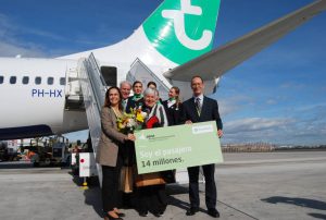La pasajera número 14 millones ha sido la holandesa Lyda Kap, de 68 años, que ha viajado desde Eindhoven en un vuelo operado por la neerlandesa Transavia a bordo del aparato ‘Peter J. Legro’