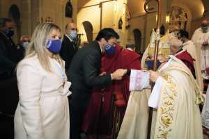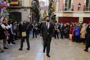 El primer edil ha abandonado la comitiva pocos metros antes de que llegara a la Plaza del Ayuntamiento. Se ha dirigido a la puerta principal del Edificio Barroco para esperar la llegada de la imagen del Patrón y pronunciar el Voto a la Ciudad. Ha recordado la celebración del pasado año cuando no hubo procesión y el acto de reconocimiento al Patrón se tuvo que desarrollar en el interior de la Concatedral.