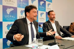 El alcalde de Alicante, Luis Barcala, ha ofrecido a su colega de Elche, Carlos González, ir de la mano para reclamar las infraestructuras del eje Alicante-Elche, en el marco de la jornadas que sobre la Región Funcional Alicante-Elche ha organizado la patronal UEPAL, en la sede de la Cámara de Comercio de Elche Parque Industrial. Barcala se ha comprometido a impulsar una comisión mixta de ambos ayuntamientos, con las universidades y las patronales para impulsar los proyectos y sumar los esfuerzos para conseguir objetivos comunes a ambas ciudades. El diálogo entre alcaldes, se ha producido tras la intervención inicial del presidente de la Diputación de Alicante, Carlos Mazón, y antes de la mesa redonda en la que han participado los presidentes de las patronales: Juan José Sellés (UEPAL), Juan Bautista Rieda (Cámara de Comercio), Joaquín Pérez (CEDELCO), Francisco Gómez (AEFA) y Perfecto Palacio (CEV Alicante).