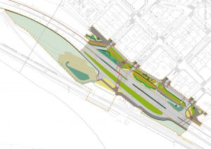 El concejal ha explicado que el proyecto se divide en tres zonas. La primera y más cercana a Urbanova y a la Ciudad de la Luz, contempla una glorieta de acceso al complejo ahora del Distrito Digital que frena y mejora la distribución del tráfico, continua con un paso de peatones sobre la calzada para seguir con una pasarela volada para salvar las vías del ferrocarril.