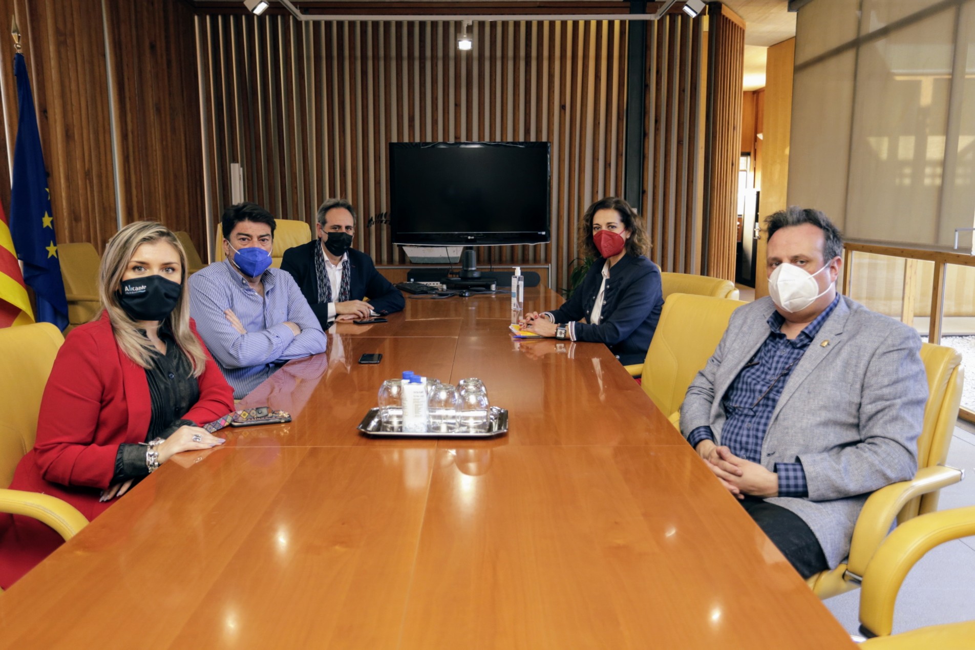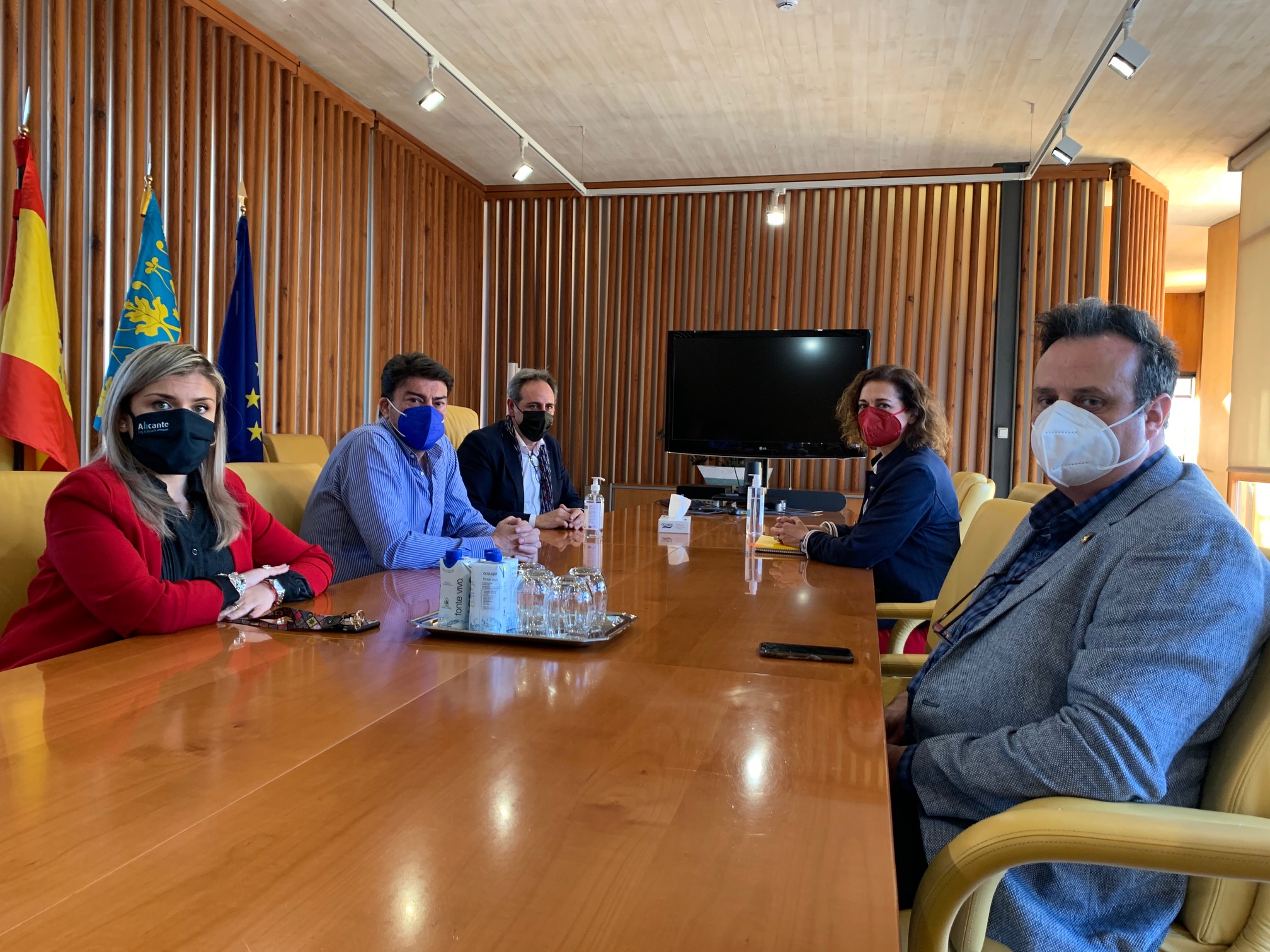 El alcalde de Alicante, Luis Barcala, la vicealcaldesa, Mari Carmen Sánchez, y el concejal de Fiestas, Manuel Jiménez, han mantenido esta tarde una reunión con la presidenta de la Federació de Fogueres, Toñi Martín-Zarco, y el maestro mayor del Gremio de Artistas de Hogueras, Joaquín Rubio, en la que se ha puesto sobre la mesa la viabilidad de la celebración de las fiestas de Hogueras en el mes de junio.