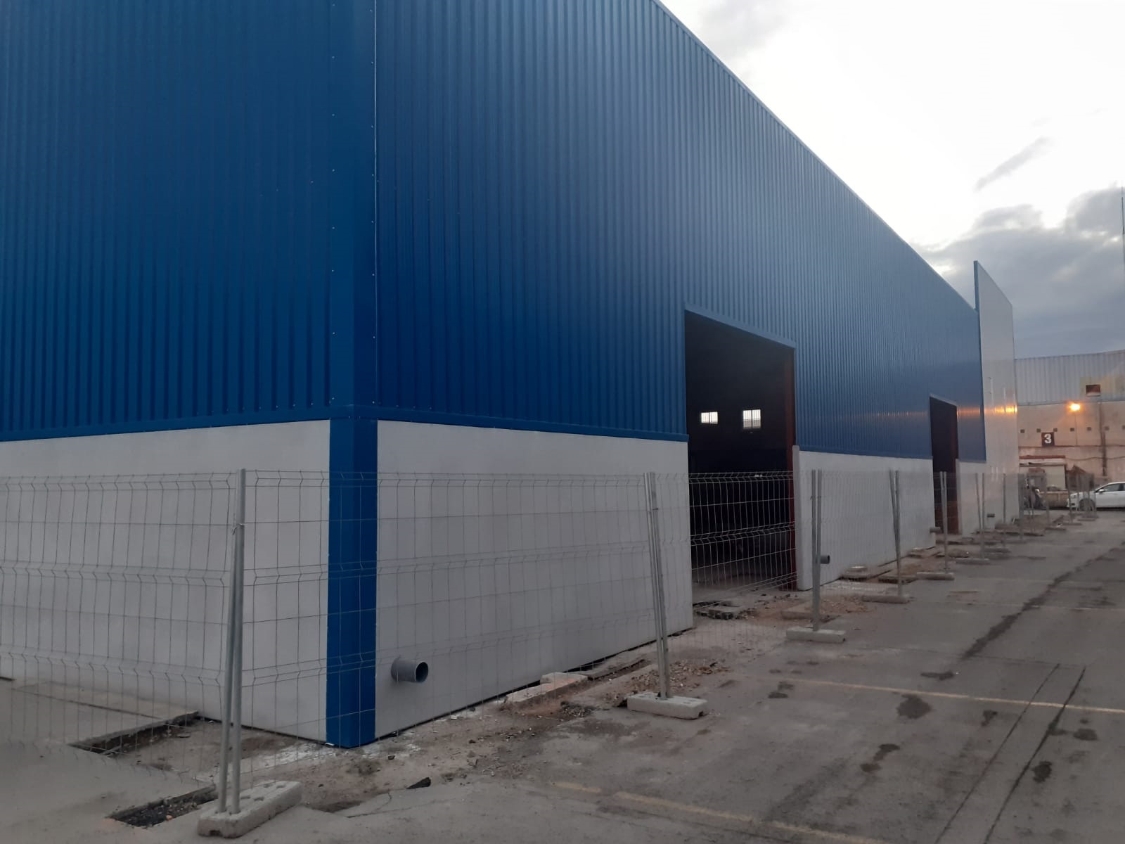 Esta nave se ha construida con estructura metálica, la cubierta de panel de chapa perfilada de acero galvanizado, y el cerramiento de fachadas en zona de oficinas con un panel alveolar prefabricado de hormigón y en el resto de la nave de zona de almacén.