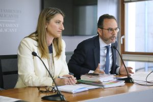 La portavoz del Equipo de Gobierno, Mari Carmen de España, Israel Cortés y Carlos Castillo, informan en rueda de prensa las propuestas aprobadas en Junta de Gobierno Local. Sala de Prensa. Foto; Ayuntamiento de Alicante/Ernesto Caparrós
