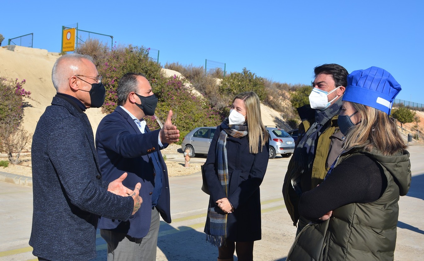 Luis Barcala y la concejala de Hostelería, Comercio y Hacienda, Lidia López, recorren las instalaciones de esta organización solidaria en la partida de Agua Amarga