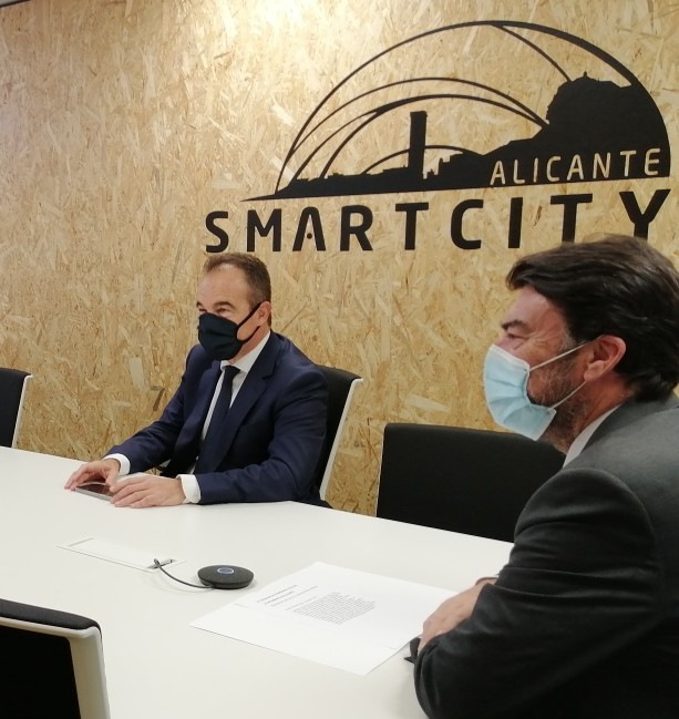 En la imagen, el alcalde, Luis Barcala, y el concejal de Innovación, Antonio Peral, en un acto reciente conectado con Alicante Smart City.
