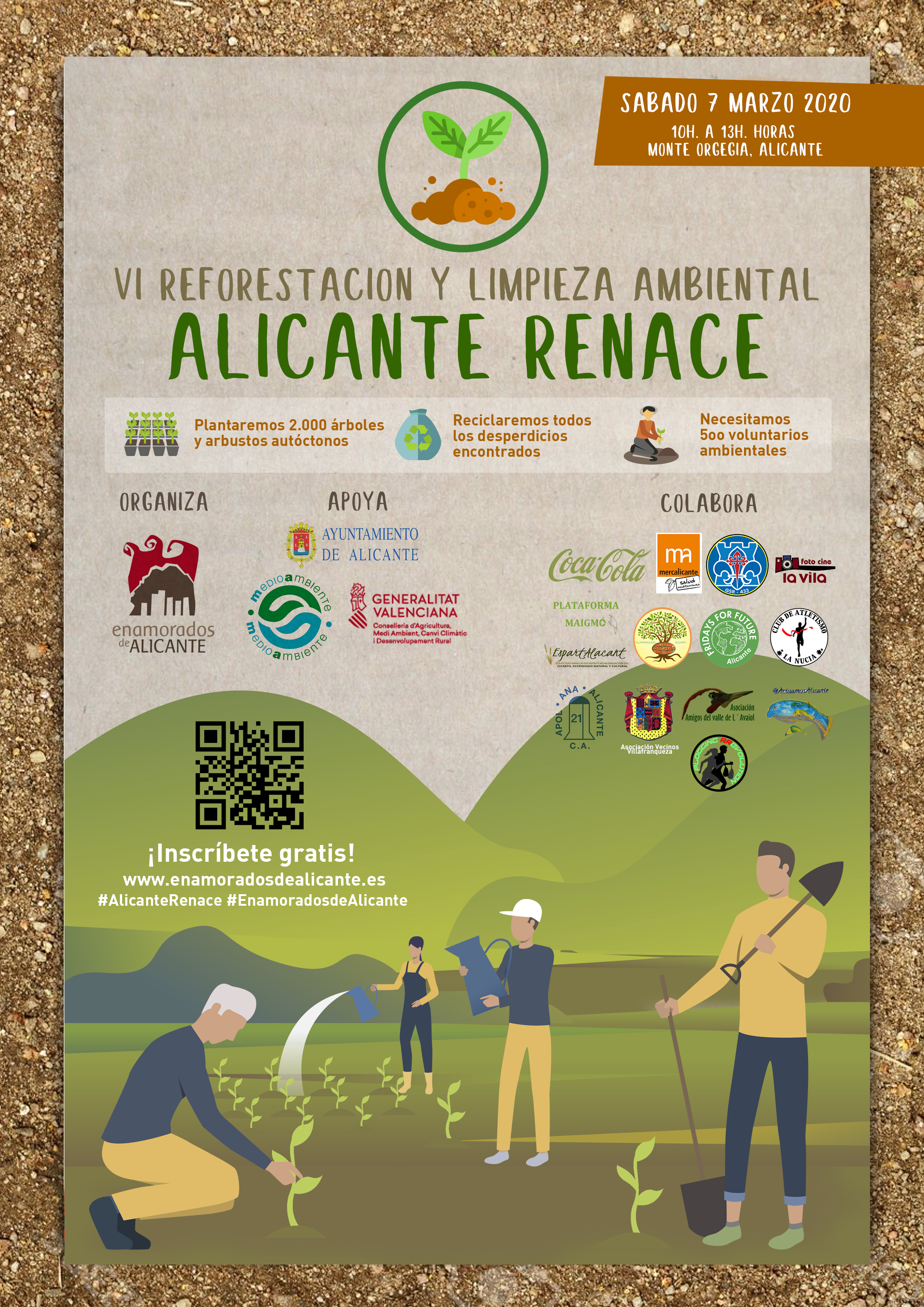 El concejal de Medio Ambiente, Manuel Villar, ha informado que el próximo sábado, 7 de marzo, se llevará a cabo la VI Reforestación y Limpieza Ambiental ‘Alicante Renace 2020’, que organiza la concejalía de Medio Ambiente junto a la asociación ‘Enamorados de Alicante’, que preside Daniel Aguilar, con motivo del Día Mundial de la Vida Silvestre y la Naturaleza. Es por ello que se llevará a cabo una batida y la plantación de 2.000 ejemplares de árboles y arbustos mediterráneos autóctonos en el monte Orgegia. Manuel Villar ha explicado que «el objetivo de esta campaña de reforestación anual es recuperar árboles y arbustos tradicionales en entornos protegidos como es el Monte Orgegia, fomentar la recuperación paisajística de un entorno protegido de Alicante, contribuir a una reducción de CO2 y a mejorar la calidad del aire«.