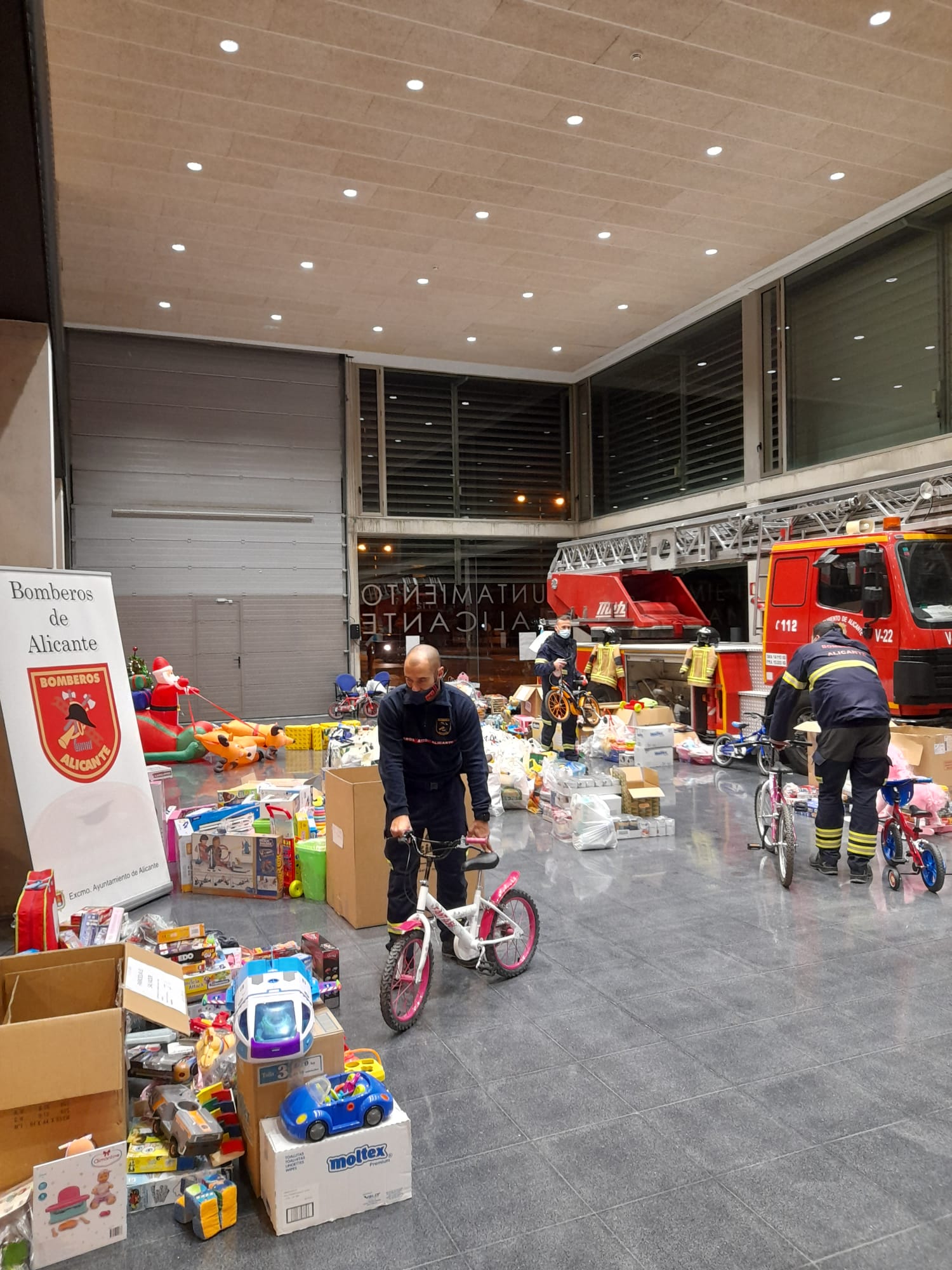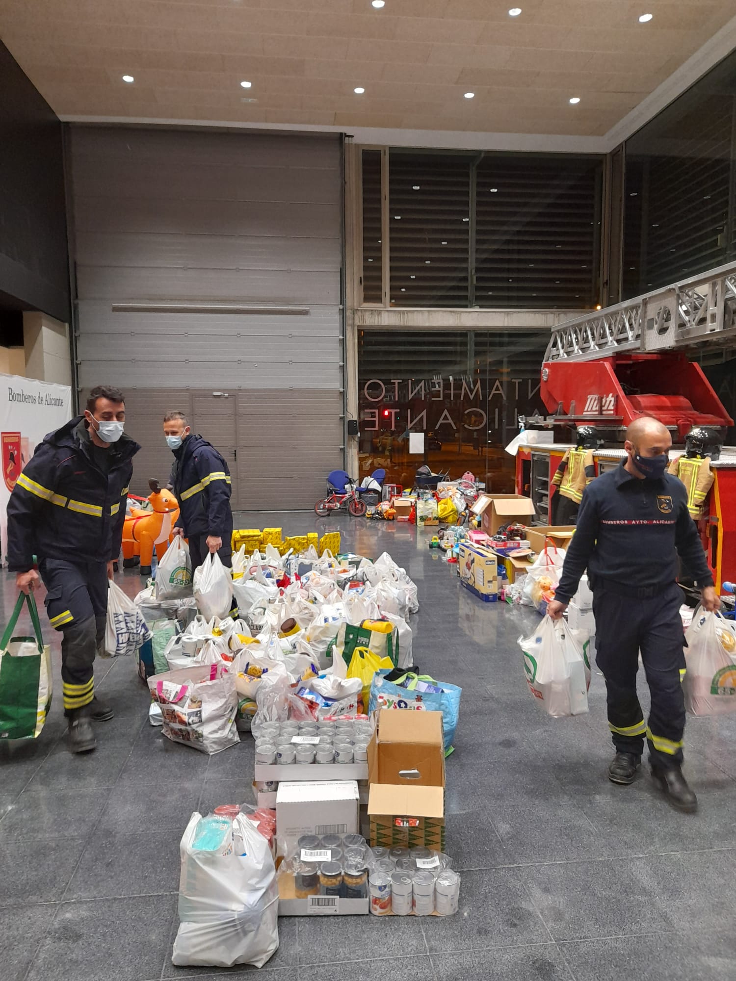 Tanto particulares como empresas alicantinas han donado juguetes y comida esta Navidad en la que ha sido la mejor Campaña Solidaria de los Bomberos del SPEIS del Ayuntamiento de Alicante de los últimos siete años.