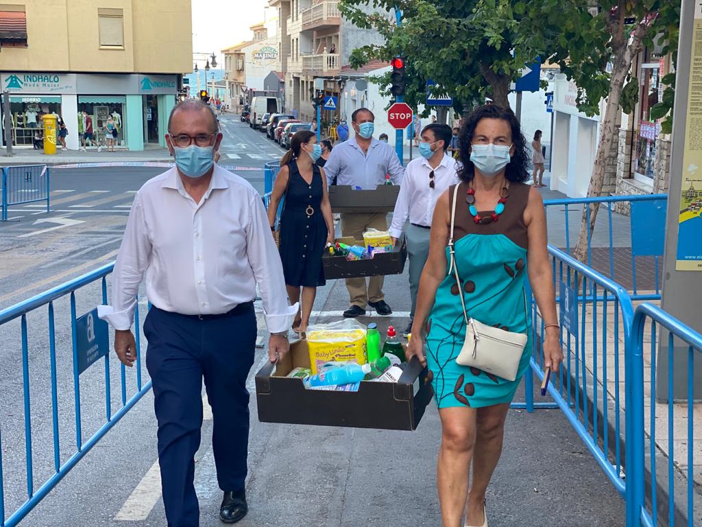 Bien se puede decir que el «todo El Campello» participó ayer en la ofrenda de alimentos a la Virgen del Carmen convocada por Cáritas para llenar las despensas con las que cubrir las necesidades de las familias vulnerables del municipio.