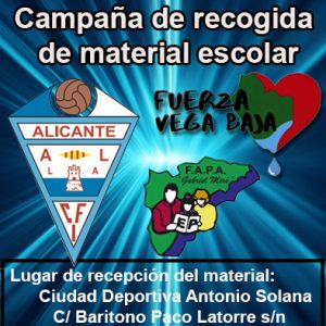 Por ello desde esta entidad queremos hacer un importante llamamiento a la sociedad y poder nutrir a estos alumnos y alumnas de material escolar, para poder seguir el curso con normalidad. La entrega se podrá realizar de 17:00 a 20:00h, en las instalaciones del CFI Alicante, Ciudad Deportiva Antonio Solana, C/ Baritono Paco Latorre, s/n Alicante.