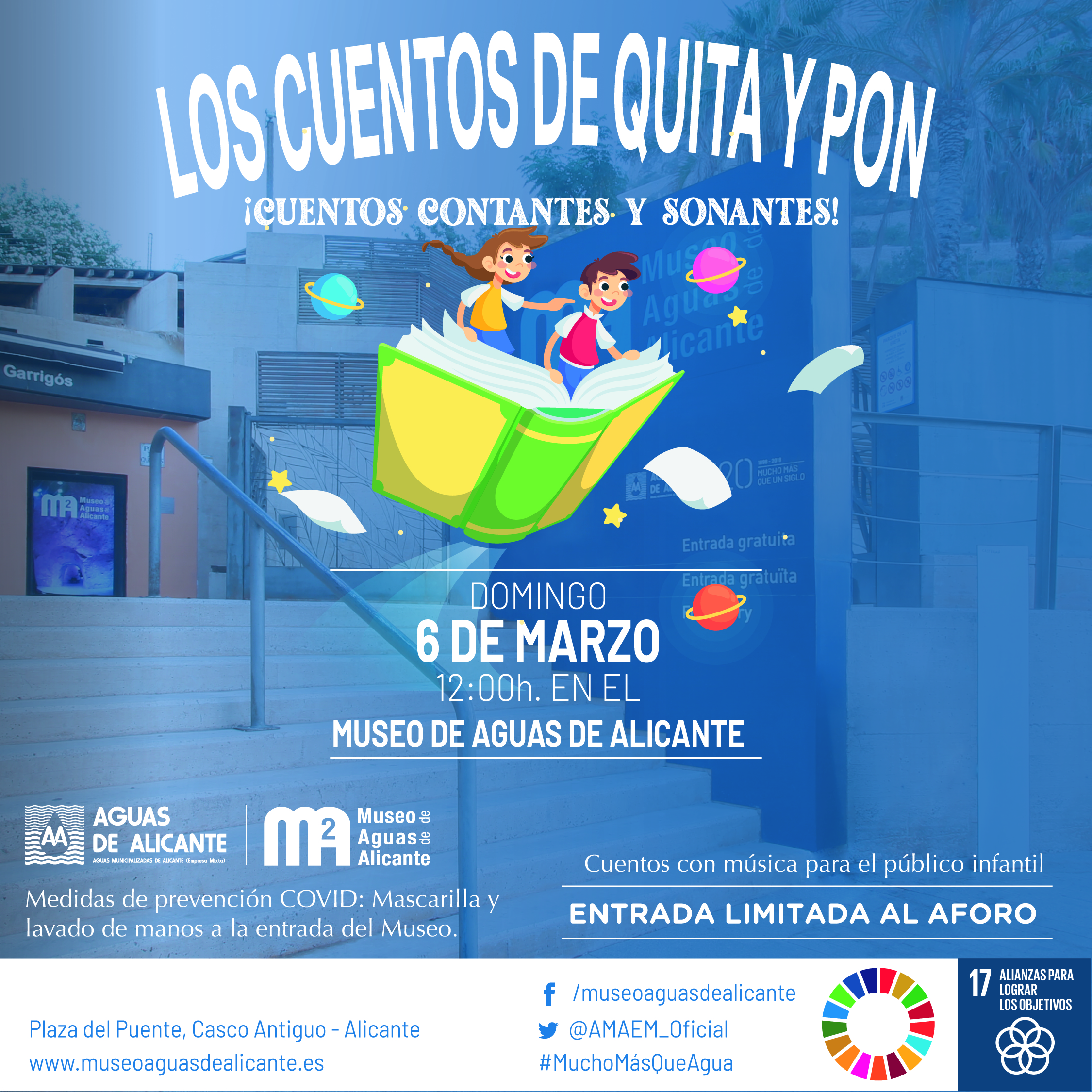 Tras unos meses con el aforo reducido y sin eventos por el repunte de la pandemia, este domingo 6 de marzo el Museo de Aguas de Alicante retoma también su actividad denominada “Agenda Cultural”, con la actuación de “Los Cuentos de Quita y Pon” y el título “CUENTOS CONTANTES Y SONANTES”, una selección de cuentos actuales y tradicionales contados en clave de humor y acompañados de música en directo.