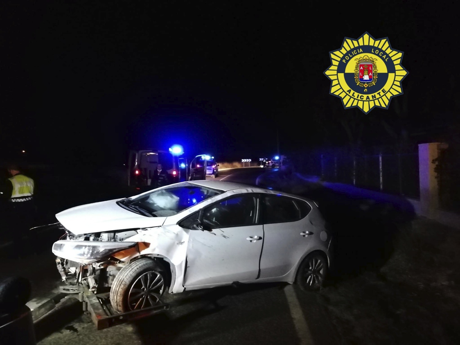 La Policía acudió sobre las 22.00 horas, a la carretera de La Alcoraya, donde un turismo, al trazar una curva, perdió el control y se salió a la cuneta dando una vuelta de campana, resultado el conductor ileso, al someterlo a la prueba de alcoholemia, se obtuvo un resultado positivo, por lo que se han instruido diligencias judiciales.