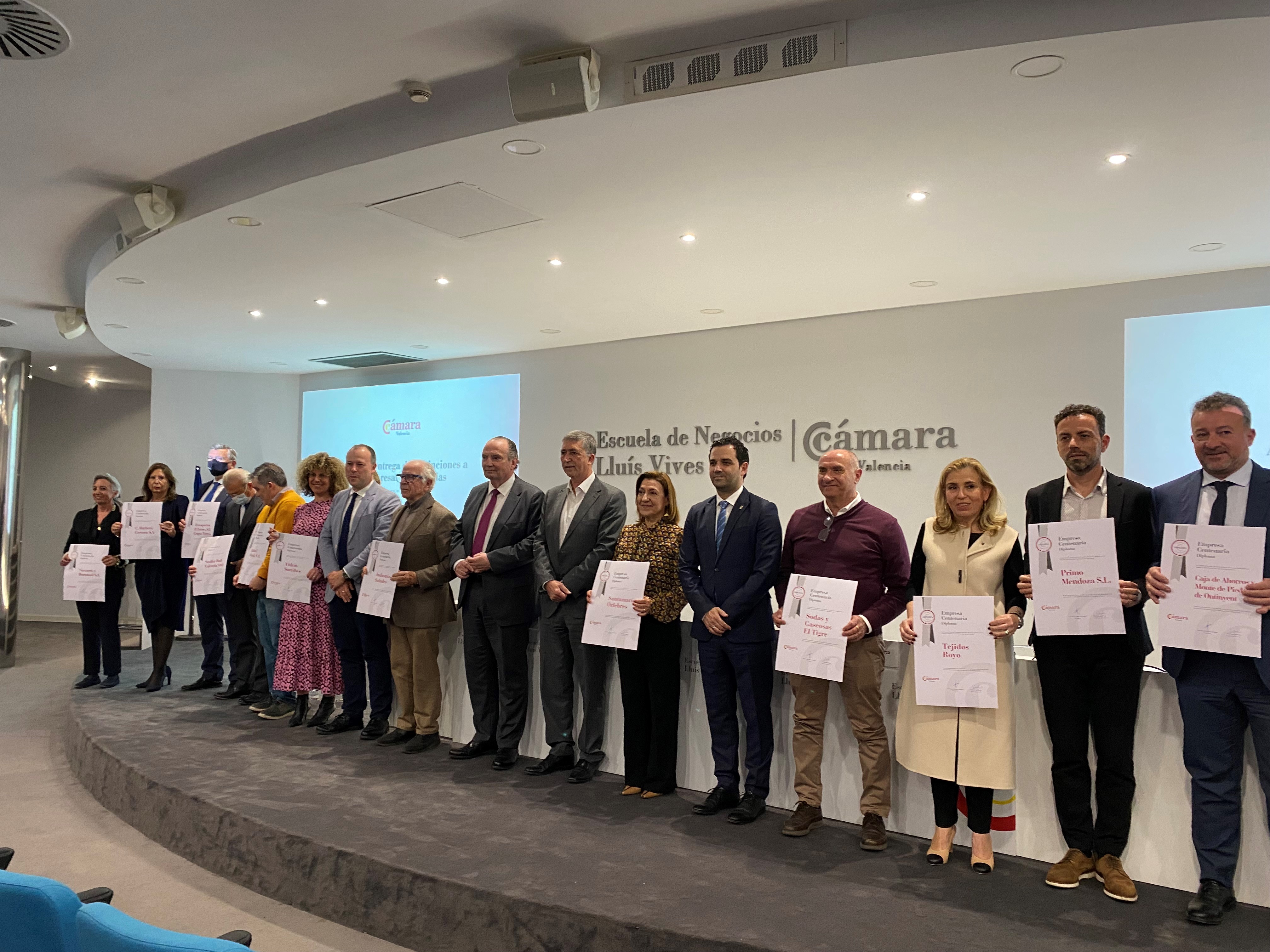 Han recibido diploma las empresas: Cirios Felipo, Santamaría Orfebres, Sodas y Gaseosas el Tigre, Tejidos Royo, Primo Mendoza, Caixa Ontinyent, Industrias Saludes, Navarro y Boronad, Stadler Rail Valencia, C. Barberá Cervera, Vidrio Sorribes, Rafael Abad y Transportes Remedios Torres.