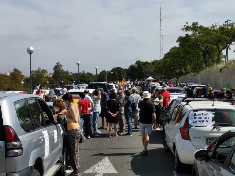 Este sábado, cinco caravanas de coches han recorrido las calles de Castellón, Valencia, Alicante y desde Requena hasta Utiel. Nos dijeron que era arriesgado convocar simultáneamente en cuatro localidades, pero nosotros sabemos que nuestros colaboradores son numerosos y estábamos convencidos de que las protestas serían un éxito. Nuestras manifestaciones motorizadas han marcado el momento de inicio de la recogida de firmas a favor de nuestra ILP de Libertad de Elección de Lengua, que llevaremos a votación en las Cortes Valencianas.