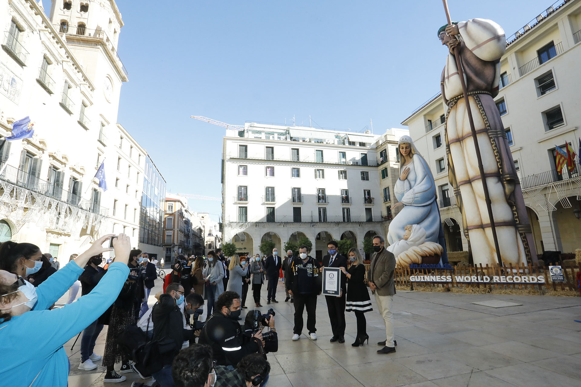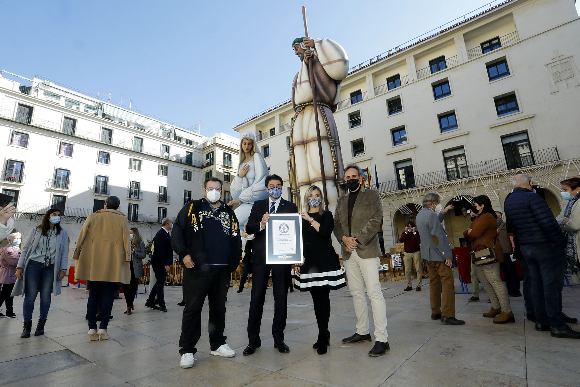 La jueza oficial del Guinness World Records, Lena Kulhmann, ha certificado hoy que la «Sagrada Familia», situada en la Plaza del Ayuntamiento, es el Belén con las figuras más altas del mundo. Oficialmente se denomina «Largest nativity scene figurines». La certificación se ha realizado vía telemática después de que la jueza no haya podido viajar hasta Alicante debido a las medidas anti COVID-19. Han sido el alcalde Luis Barcala y la vicealcaldesa Mª Carmen Sánchez quienes han descubierto la Certificación del Guinness World Records.