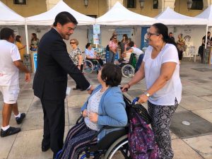La plaza del Ayuntamiento ha reunido esta mañana a una veintena de organizaciones y empresas que trabajan por y para la integración de personas con diversidad funcional en el mundo laboral en el I Encuentro de Empleo para Personas con Diversidad Funcional, al que han asistido el alcalde, Luis Barcala, junto a la edil de Empleo, Mari Carmen de España, y distintos miembros de la corporación municipal. La cita del I Encuentro de Empleo trata de favorecer la relación entre empresas y asociaciones para que «los empresarios pierdan el miedo a contratar a personas con diferentes capacidades y generar oportunidades de empleo», tal y como ha trasladado la edil de empleo, Mari Carmen de España.