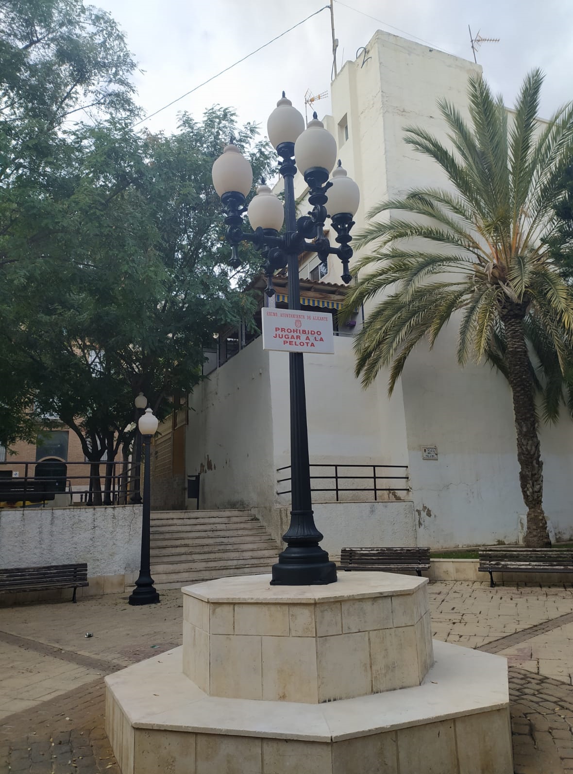 La intervención llevada a cabo en la plaza de Villafranqueza ha sido integral y los operarios han pintado las farolas, los bancos, muretes, se han quitado los grafitis, remodelado los juegos infantiles y la fuente para dejarla en las mejores condiciones.