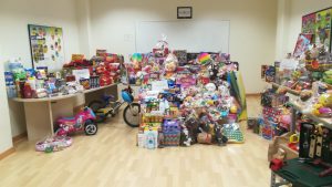 Entre las actividades que el Ayuntamiento de Alicante viene realizando en el ámbito de desarrollo del «Plan Integral de Recuperación del Centro Tradicional» esta mañana ha tenido lugar en la Calle San Francisco la entrega de los juguetes y alimentos, recogidos en la jornada solidaria del pasado 16 de diciembre, en beneficio de la Asociación de Ayuda Social Reacción Solidaria, Acogida al niño y a la mujer, Asociación Intercultural Familiar, Asociación San Vicente de Paúl.La Asociación de Vecinos de la Cañada donará mandarinas a la Asociación Intercultural Familiar que recogerán el próximo 4 de enero