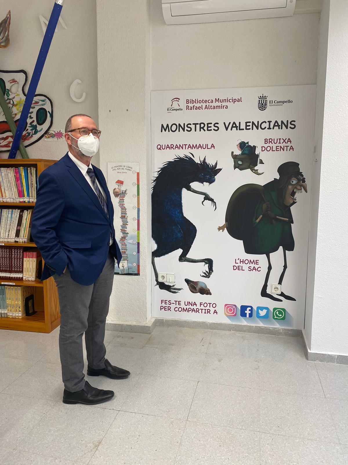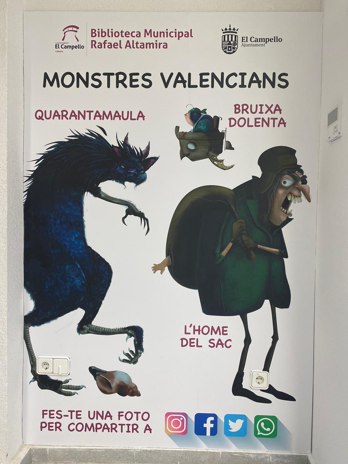 Cuando la cultura norteamericana se impone en todo el mundo y gana terreno la factoría Disney o los hiperconocidos personajes de la festividad importada de Halloween, la concejalía de Cultura de El Campello que dirige Dorian Gomis (PP), ha tenido la feliz idea de redecorar la sala infantil de la Biblioteca Pública con toda la familia de los llamados “monstruos valencianos”, rescatando del imaginario colectivo figuras que forman parte de nuestra cultura y tradición.