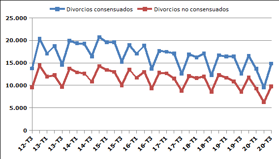 El incremento de la ruptura de parejas se produce después de la reducción del segundo trimestre a causa del confinamiento y la suspensión de los plazos procesales