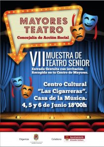 El Ayuntamiento de Alicante, a través de la concejalía de Acción Social, y en colaboración con el área de Cultura y los Centros Municipales de Mayores, han organizado la VII Muestra de Teatro Senior en el Centro Cultural «Las Cigarreras», que tendrá lugar durante los días 4, 5 y 6 de junio. Las obras, que se desarrollarán en el espacio «Casa de la Música», darán comienzo a las 18:00 horas. Las entradas son gratuitas y las invitaciones se podrán adquirir en los propios Centros de Mayores.