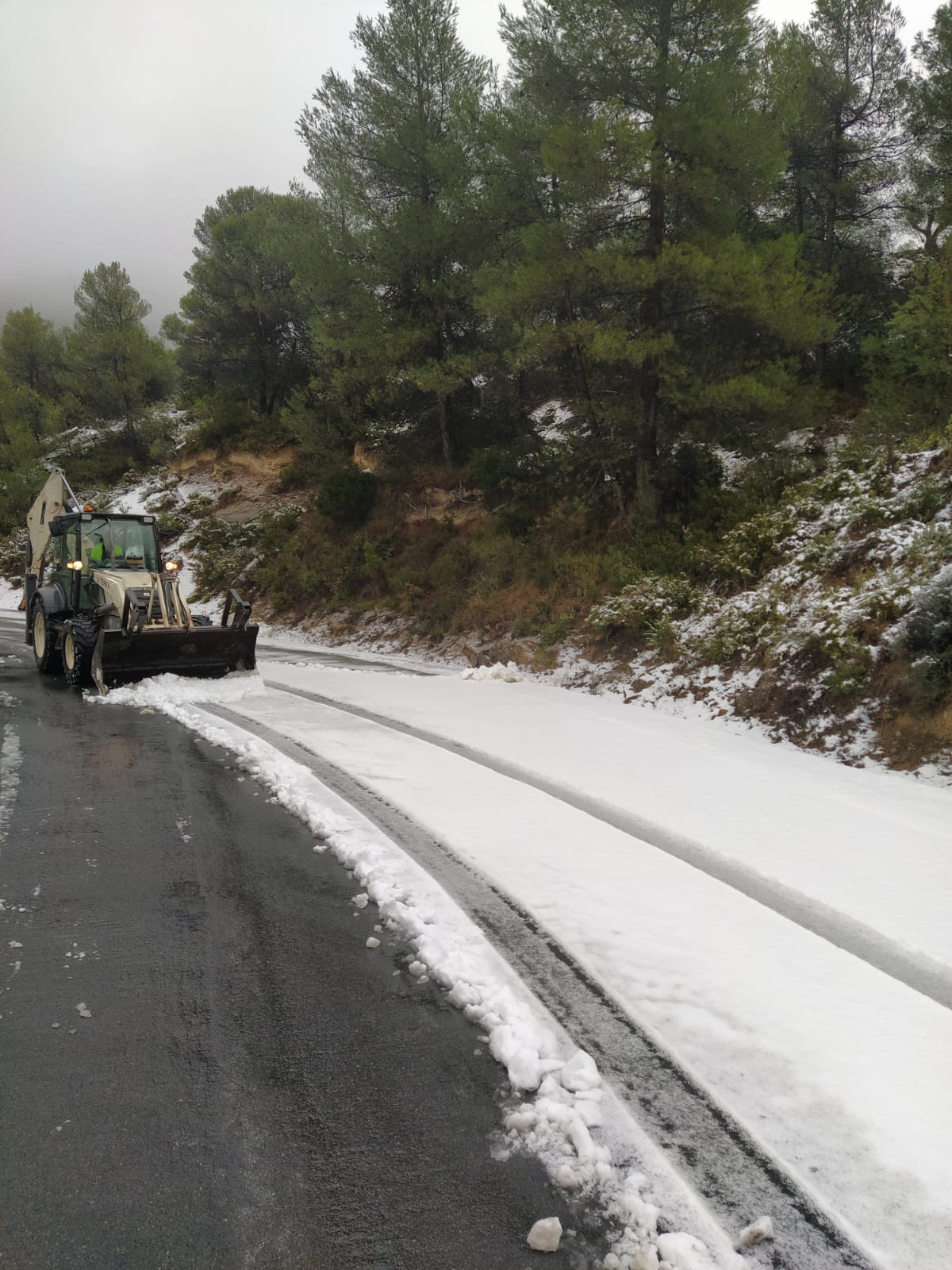 La Diputación de Alicante ha activado un operativo especial compuesto por máquinas quitanieves, retroexcavadoras y camiones de gran tonelaje ante el temporal de frío, lluvia y nieve que afecta estos días al territorio.