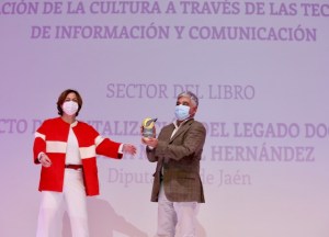 El Premio a la innovación de la cultura a través de las tecnologías de la información y comunicación ha recaído en el Proyecto de Digitalización del legado documental del poeta Miguel Hernández, realizado por la Diputación de Jaén a través del Instituto de Estudios Gienenses, en la categoría del sector del libro; el dramaturgo, director de teatro y compositor Juan Luis Mira Candel, del sector de las artes escénicas; el artista Daniel García Andújar, del sector de las artes visuales; el ilustrador Mario Paul, del sector del audiovisual; y el pianista y compositor Ricardo Descalzo, del sector de la música.