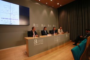 La Diputación de Alicante apoya la promoción de un trabajo audiovisual que, con el título ‘Y en cada lenteja, un Dios’, ofrece al espectador un viaje gastronómico y emocional por el interior de la provincia. El vicepresidente y diputado de Promoción Turística, Eduardo Dolón, ha presentado esta mañana el proyecto, acompañado por el cocinero Kiko Moya y el sumiller Alberto Redrado, ambos impulsores de esta iniciativa, así como por el vicepresidente de la Asociación Alicante Turismo Interior, Ramón Reche.