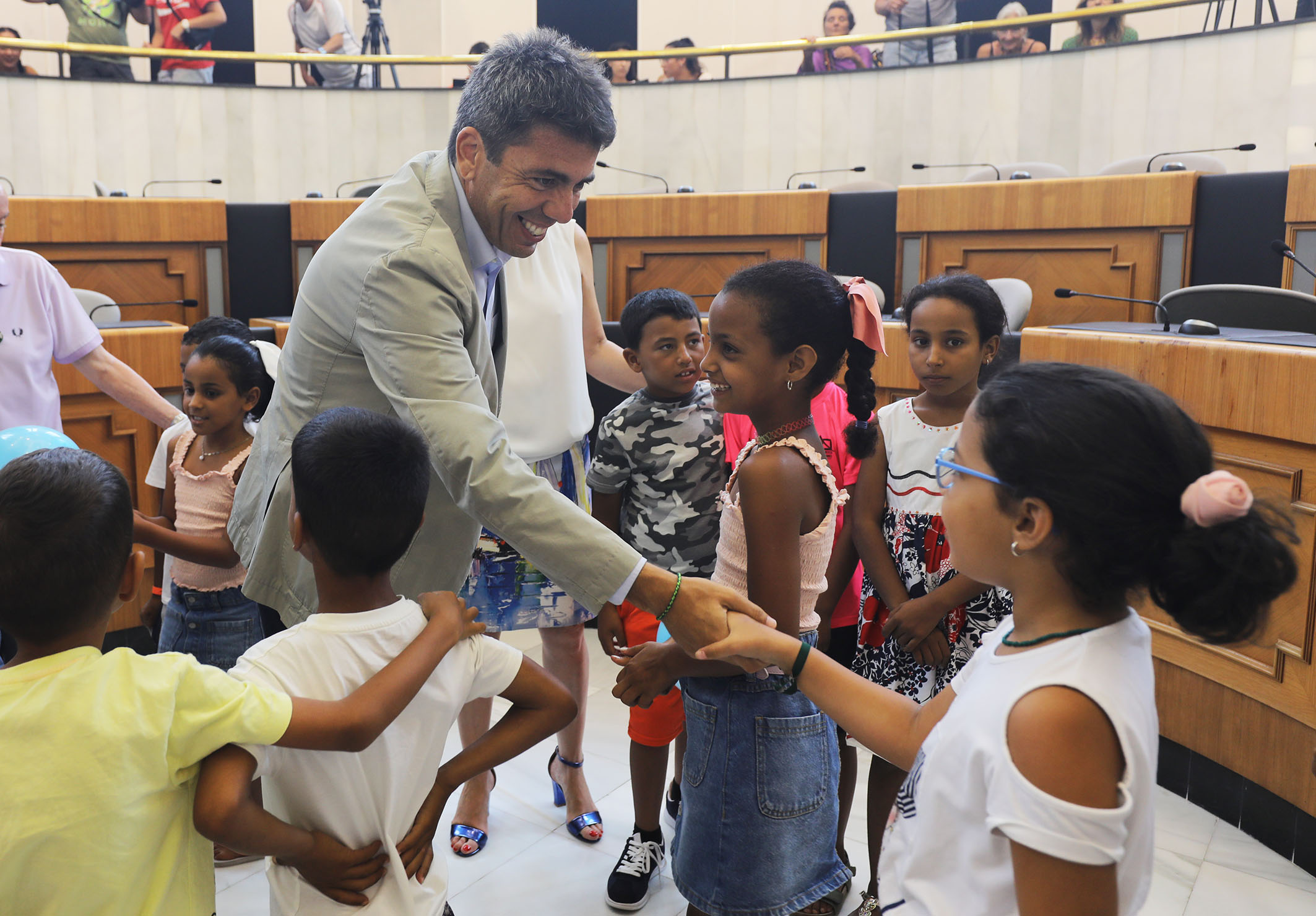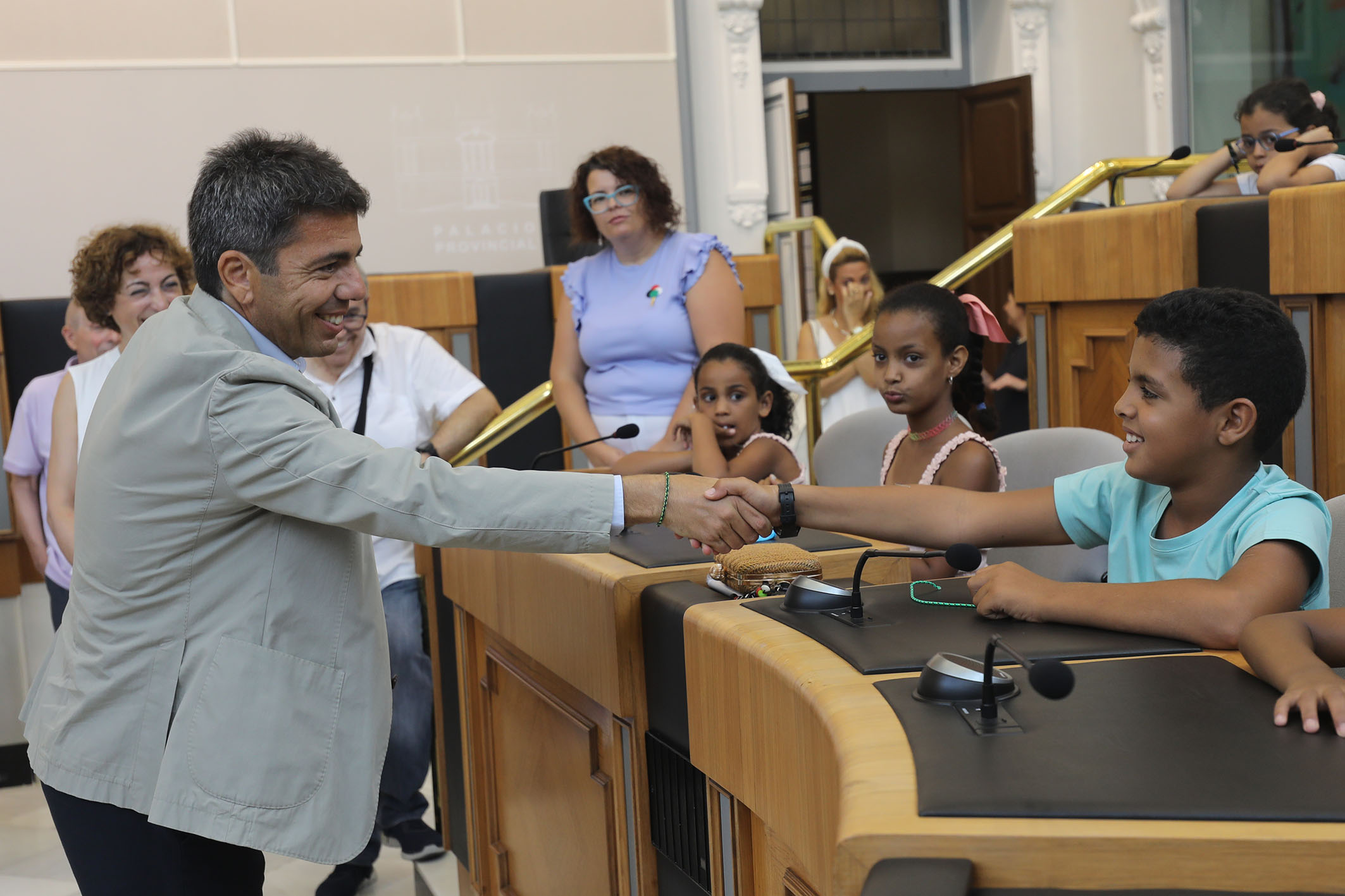 El presidente de la Diputación de Alicante, Carlos Mazón, ha recibido esta mañana en el Palacio Provincial a los integrantes del programa ‘Un verano en paz’, una treintena de niños y niñas saharauis que pasan los meses de julio y agosto en régimen de acogimiento con familias alicantinas.