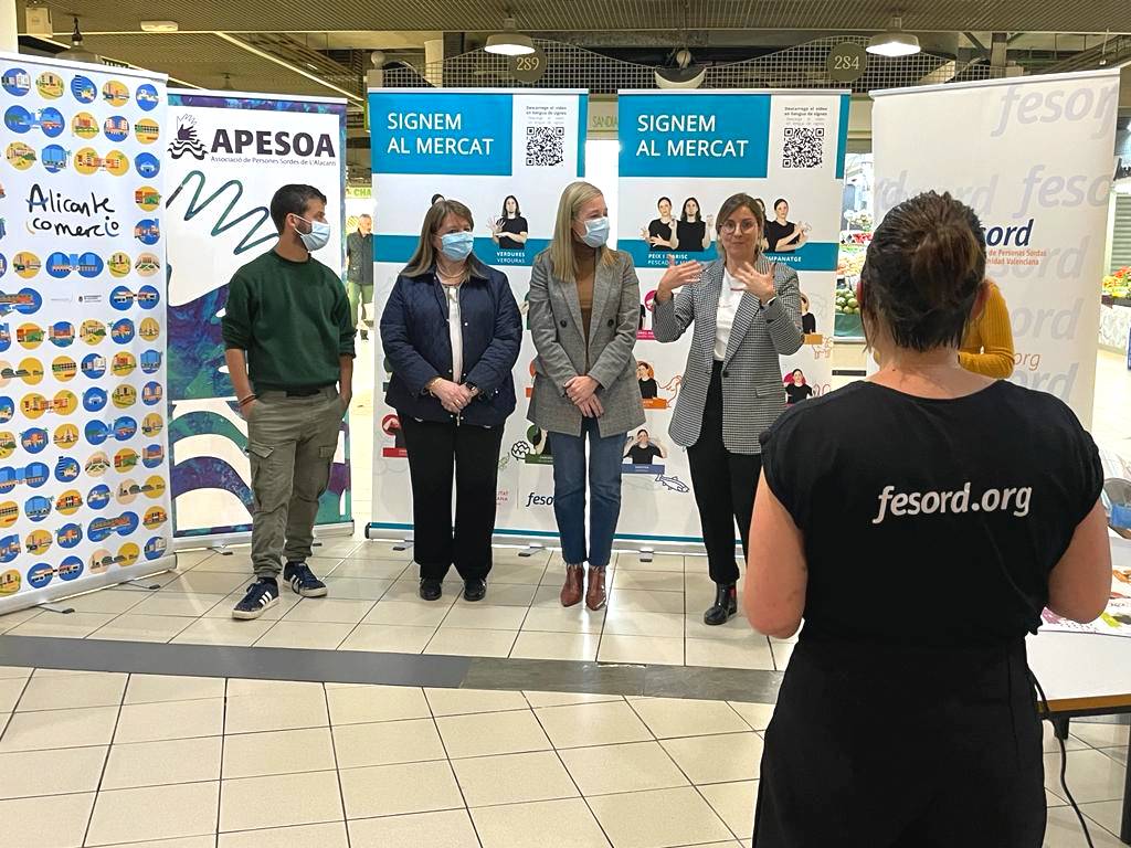 Por su parte el presidente de la Asociación de Comerciantes en Mercados Municipales de Alicante, Paco Alemañ, agradeció la iniciativa en el Centenario del Mercado Central señalando que «esta campaña es muy necesaria para visibilizar con carteles y lograr acercar la lengua de signos a los comerciantes que siempre hemos sido unos agentes importantes de la cohesión social y la integración».
