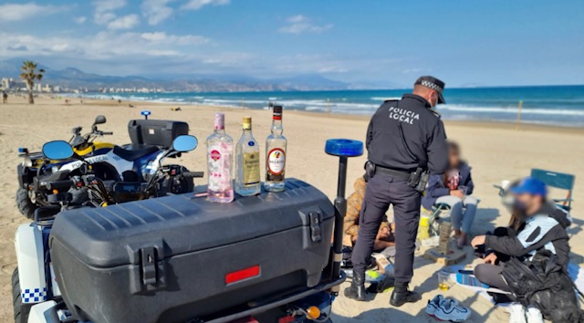 Del total de sanciones, se han interpuesto 86 por consumir alcohol en parques, playas y plazas de la ciudad, con un total de 24 botellones disueltos y se decomisaron las bebidas en los castillos de San Fernando y Santa Barbara, parque de La Ereta, Cala Cantalar, Colonia Romana, Rabasa, Lucentum, Glorieta Reino Unido y en las playas de San Juan, Almadraba y Albufera, entre otras.