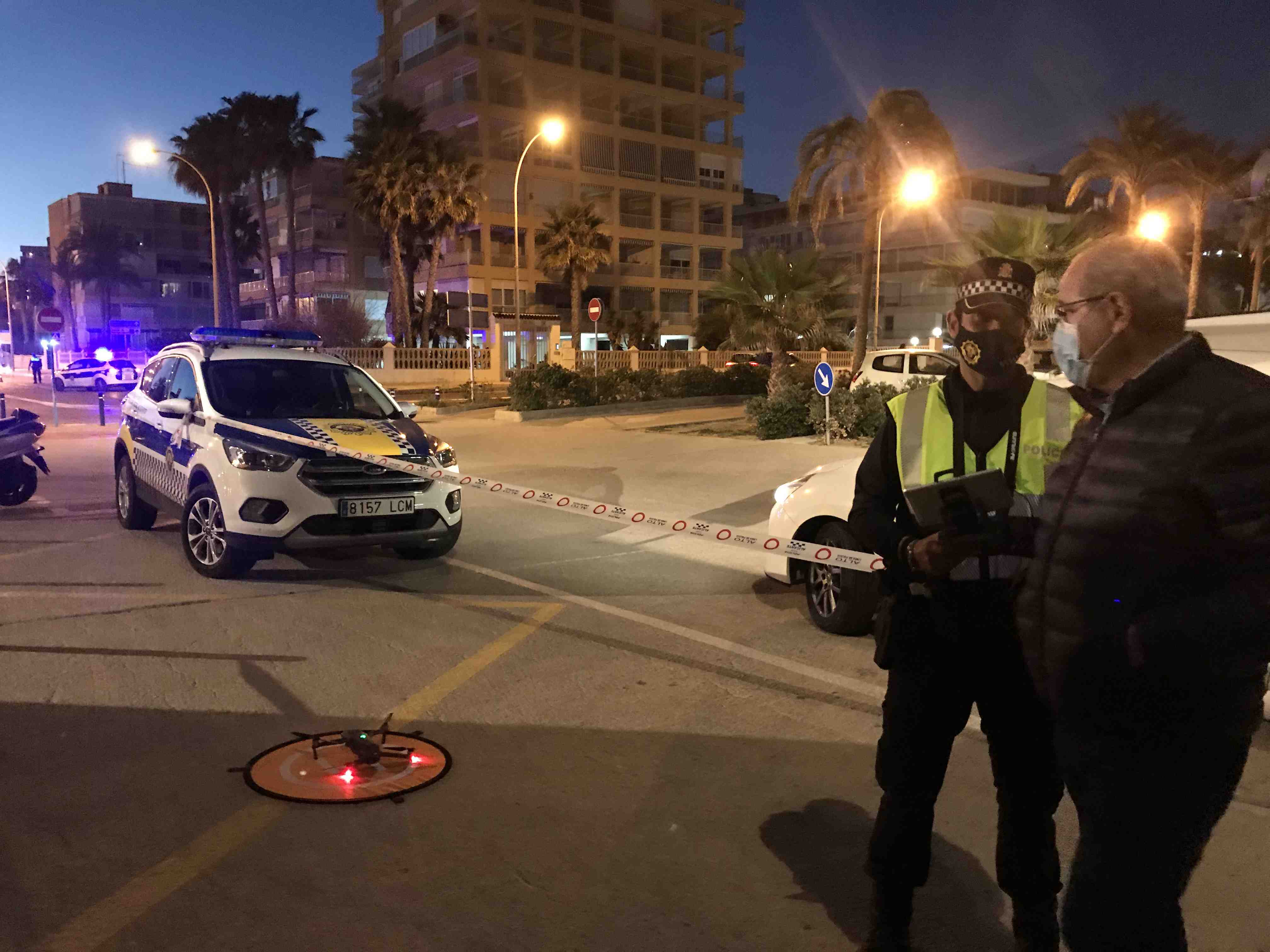 El Dron de la Unidad de Medios Aéreos no Tripulados -UMANT- que fue utilizado en el operativo por la Policía Local y los bomberos del SPEIS en la primera jornada, estableció una eficaz vigilancia activa aérea durante todo el día, y logró interceptar a un vehículo que se quería saltar el control situado en la avenida de la Universidad. El vehículo se salió de la carretera que llevaba al punto de control, por un camino secundario de tierra, y el Dron localizó el vehículo y realizó una persecución, logrando interceptarlo por los agentes de Policía Local y fue sancionado.