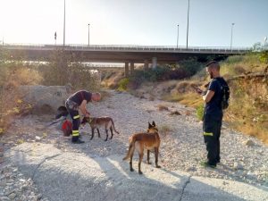 Los grupos de búsqueda de bomberos se dividieron en diferentes equipos y realizaron batidas por las inmediaciones del Barranco de las Ovejas y del Polígono de Babel junto con los dos perros de la Unidad Canina del SPEIS. En el dispositivo organizado participaron también los voluntarios de Grupo de Especialistas de Rescate Canino -GERCA-.