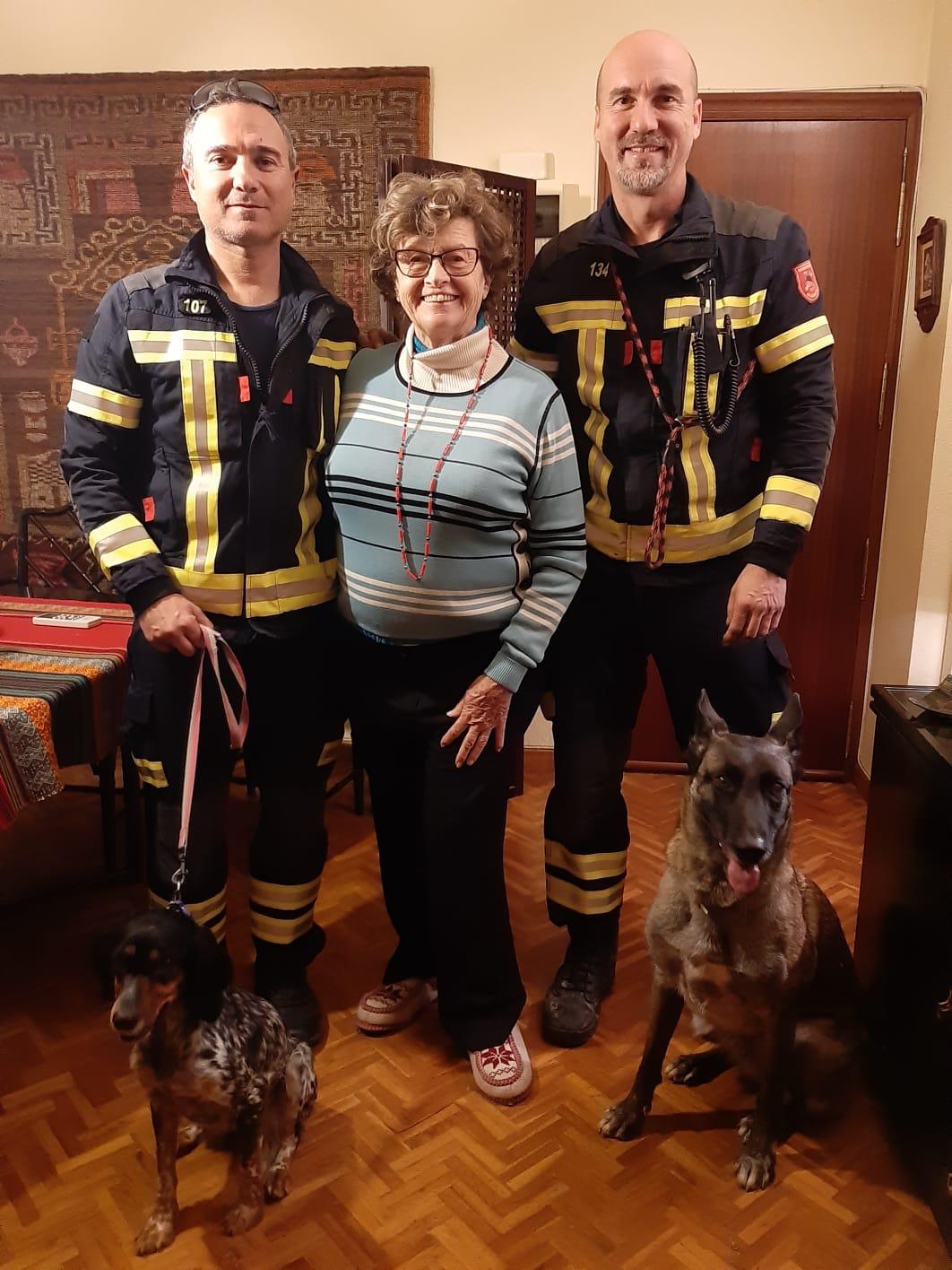 Annie Wellens Dejaeghere ha expresado que ella y toda la familia están “tremendamente agradecidos por la gran labor que han hecho encontrándola, y por la dedicación, empeño, gran organización entre todos los departamentos, y el trato recibido”. En concreto, Annie quiere dar las gracias públicamente a “todos los equipos de Bomberos, Policía Nacional y demás que ayudaron en el dispositivo de búsqueda y rescate, incluyendo a los más de 50 personas voluntarias que vinieron a buscarla de nuestros familiares, vecinos y amigos”. Asimismo Annie se mostró emocionada y quiso tener unas palabras especiales de agradecimiento para la Unidad Canina de bomberos, ya que según subrayó “sin los perros no me habrían encontrado, y no tenemos palabras suficientes para expresar nuestra admiración y agradecimiento». En este sentido, ambos bomberos de la Unidad Canina del SPEIS han destacado que el trabajo de búsquedas de personas es “una labor de equipo donde la coordinación y organización del dispositivo es esencial para que sea un éxito, así como la rapidez”, al tiempo que han mostrado muy emocionados con la visita que ha sido “muy especial”, incidiendo en que esta es la parte más gratificante de su trabajo poder lograr encontrar viva a personas que llevan extraviadas varios días y luego recibir su agradecimiento.