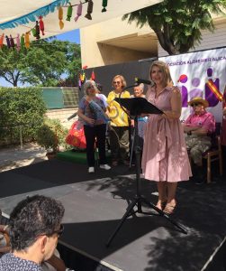 La edil ha reseñado que «con la construcción de esta hoguera se vuelve a poner de manifiesto una ce las muchas características consustanciales a la Fiesta. En este caso, el de la solidaridad. Usuarios, trabajores del centro, comisionados de las hogueras La Condomina, Altozano, Port d’Alacant, Portuarios-Pla del Bon Repós, del Centro Infantil «Los Picapiedra» y del Centro de Formación Nazaret -dependiente de la Concejalía de Fomento y Empleo- se han encargado de construir la hoguera en los últimos meses. El acto ha sido presentado por Aleida González Martín-Zarco, Bellea del Foc 2018.