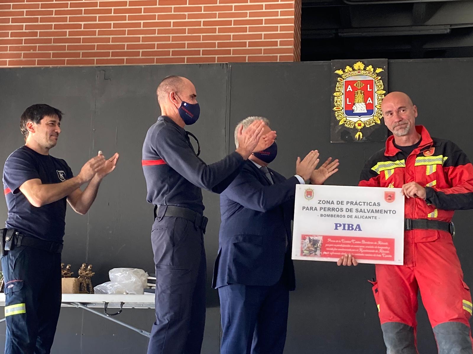 Asimismo uno de los momentos emotivos de la jornada llegó con el reconocimiento que se realizó en homenaje al perro de la Unidad Canina ‘Piba’ fallecido, que recogió el Bombero, Narciso Ayuso. Los Bomberos anunciaron que ponen su nombre a la zona de maniobras y simulacros de búsqueda y rescate en estructuras colapsadas y derrumbes del parque, denominado a partir de hoy como ‘Zona de Prácticas para perros de Salvamento PIBA’.