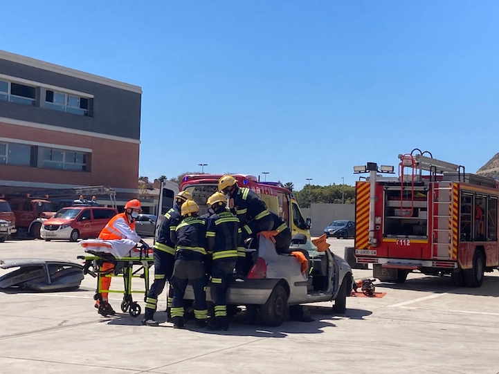 El simulacro realizado por la unidad de Búsqueda y Rescate ha simulado que un vehículo se ha precipitado por un barranco y desde la carretera no se podía ver su ubicación, montando un operativo para localizarlo, accediendo los efectivos con maniobras de desplazamiento verticales hasta la zona. Los Bomberos han logrado auxiliar a los tres heridos, excarcelar a una persona atrapada y localizar a otras víctimas con ayuda de los perros de la Unidad Canina.